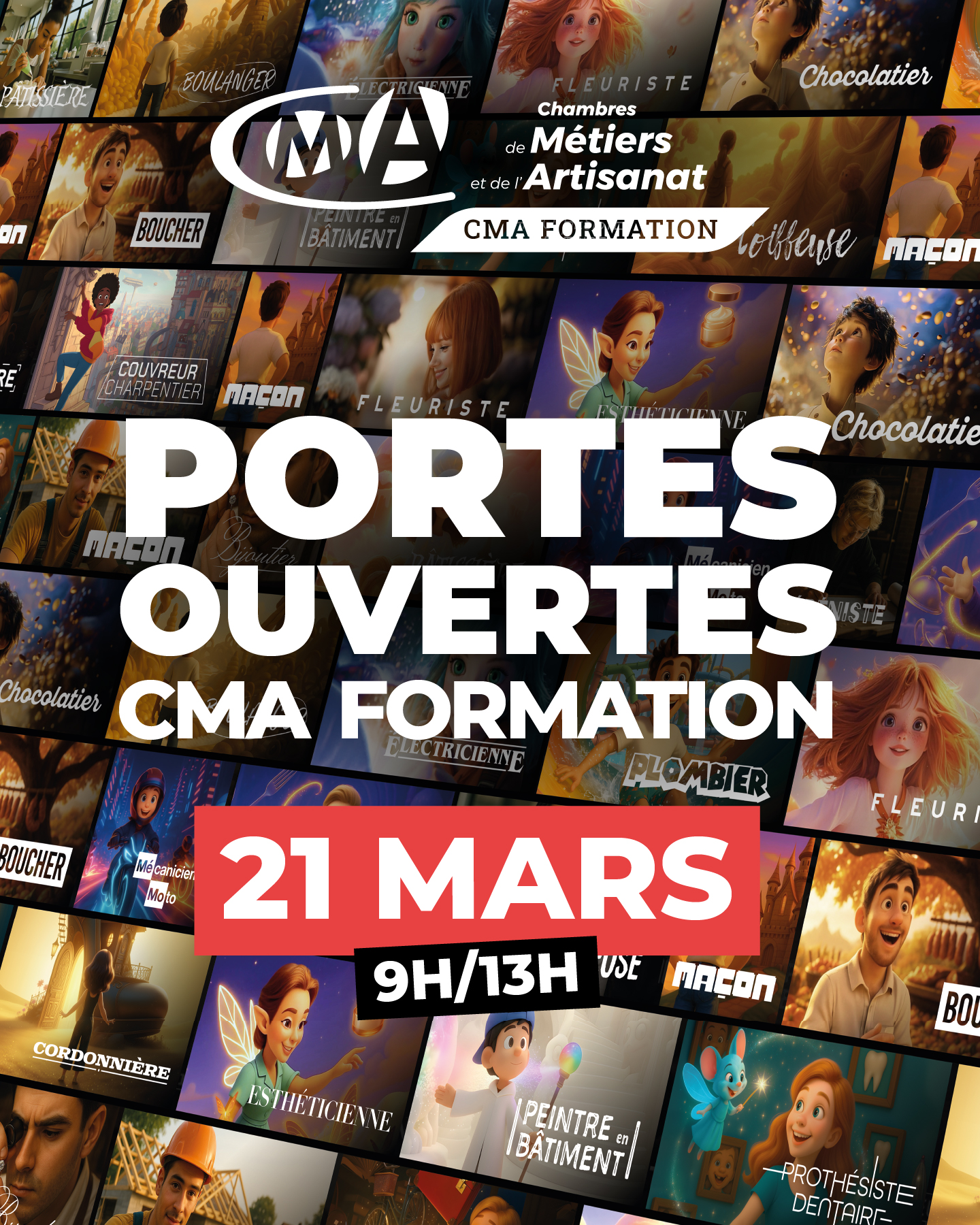 nos établissements CMA Formation vous ouvrent leurs portes, partout en région, pour vous faire découvrir les métiers de l’artisanat !