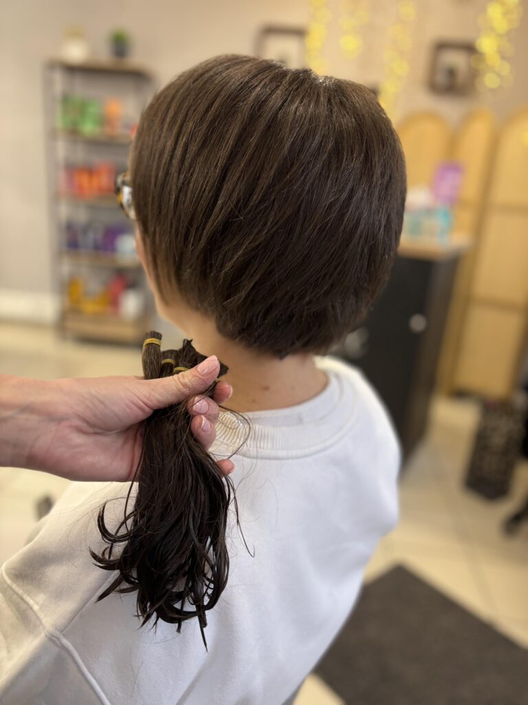 -CD : Vous savez les gens ont du cœur, mes clients sont touchés et ont envie de faire un don. Ça ne coûte rien et quand on sait quel bénéfice ça peut procurer ! Une dame a fait 100 km, pour venir de Paris jusqu’à mon salon et couper ses cheveux. Elle a donné 47 cm (sourire). Une dame de 70 ans qui n’avait pas coupé ses cheveux depuis des années, une maman avec ses jumelles de cinq ans …